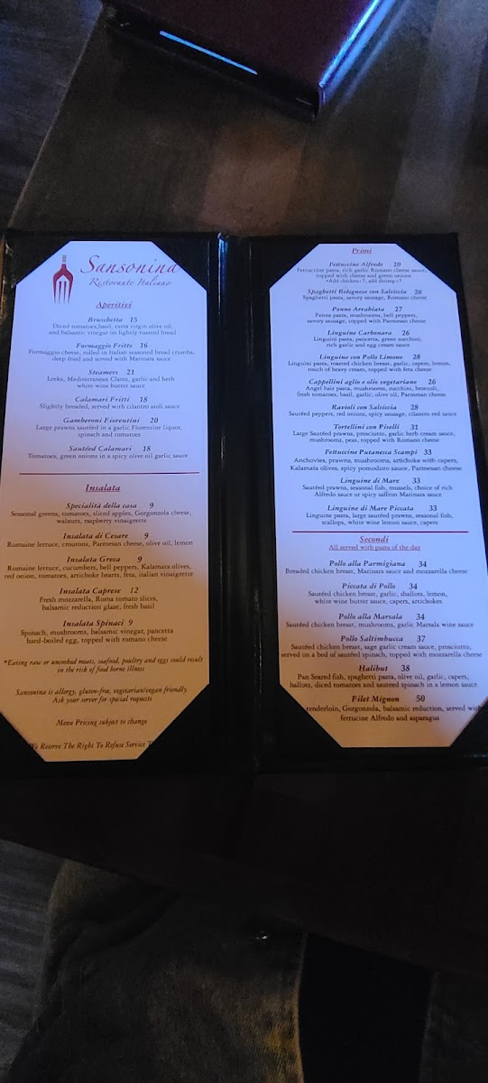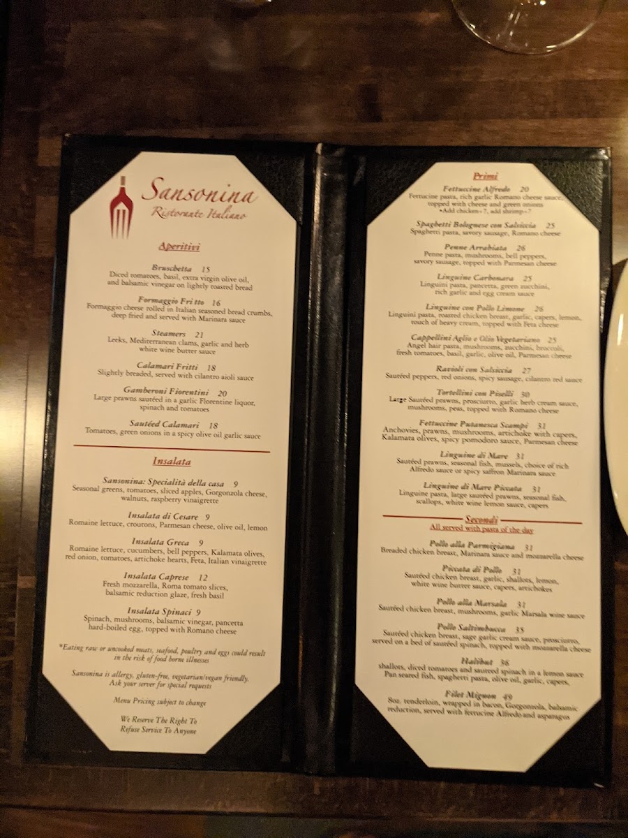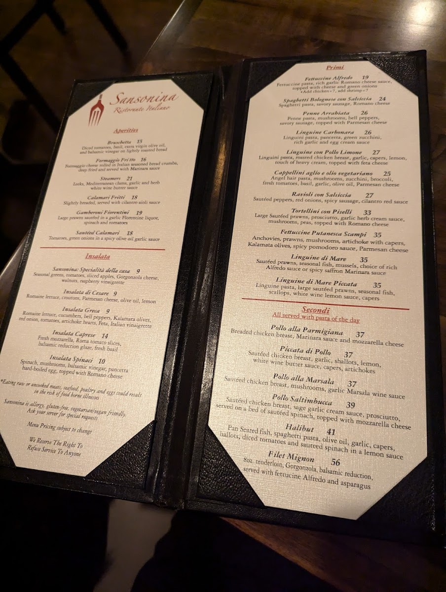 At Sansonina Ristorante Italiano, every dish on the menu is a celebration of authentic Italian flavors. Nestled in the heart of Renton, WA, this cozy eatery brings the tastes of Italy to the Pacific Northwest. Whether you’re in the mood for a rich, creamy risotto, a perfectly grilled piece of fish, or a comforting plate of handmade pasta, the Sansonina Ristorante Italiano Menu offers a little something for everyone. With ingredients sourced from the best local suppliers and a variety of options to suit all tastes, every bite is crafted with care and passion. The warm, welcoming atmosphere only enhances the experience, making it the perfect spot for a casual meal or a special night out.
